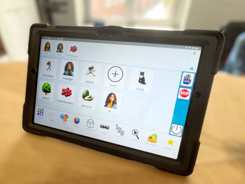 Certains besoins sont plus urgents que d’autres. Des raccourcis permettent de composer instantanément des phrases prédéfinies, comme « Aide-moi » par exemple.